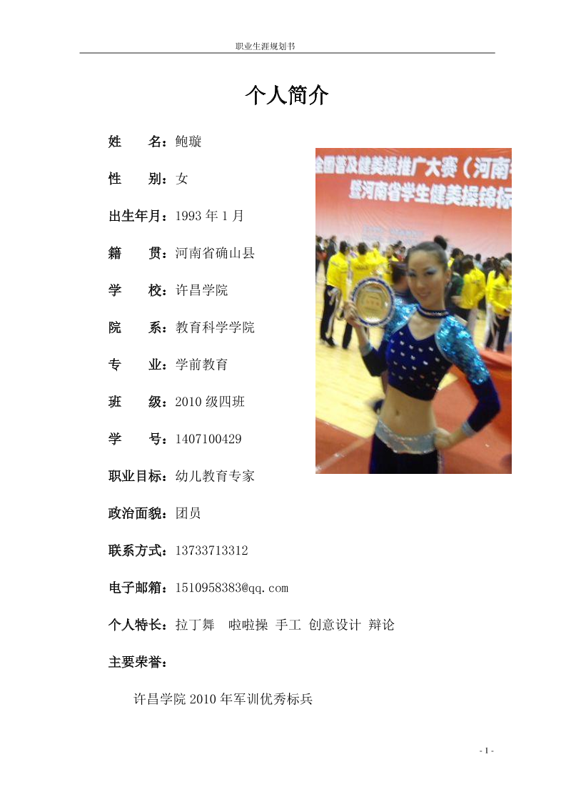 职业生涯规划格式模板1