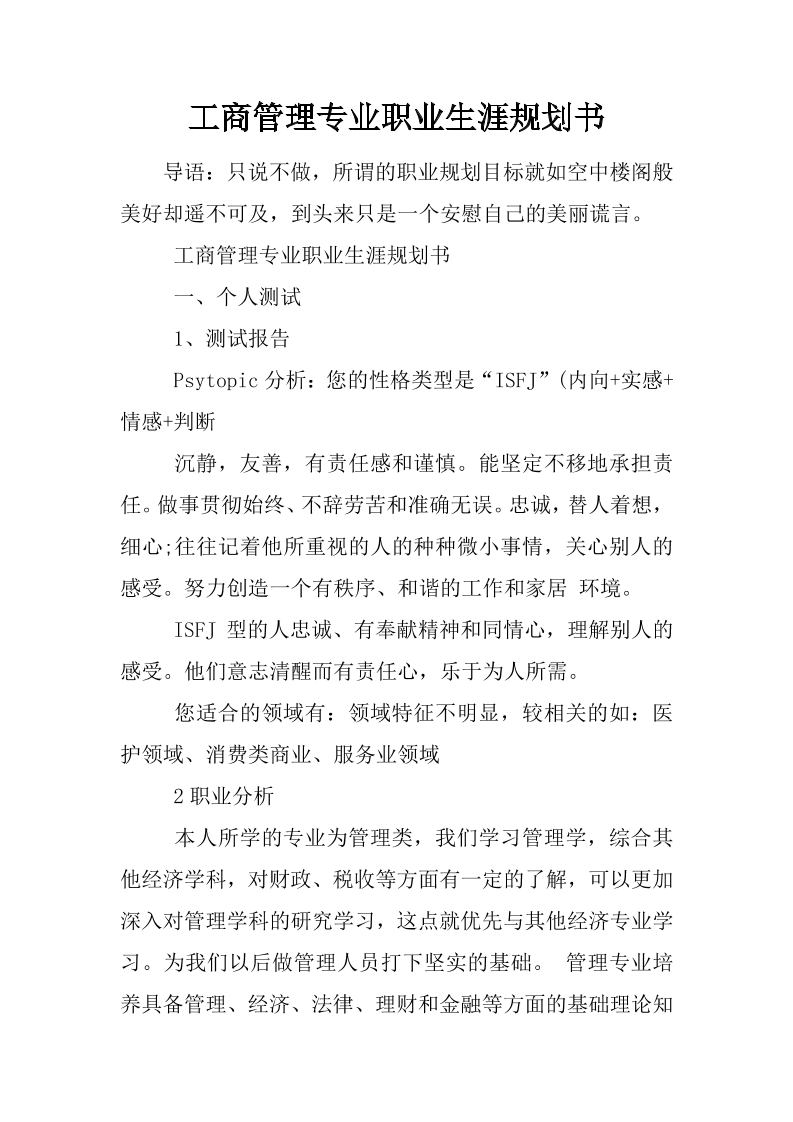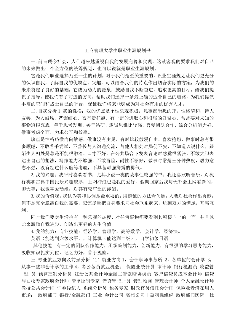 工商企业管理专业职业生涯规划书---大学生职业生涯规划书(最新模板范文)