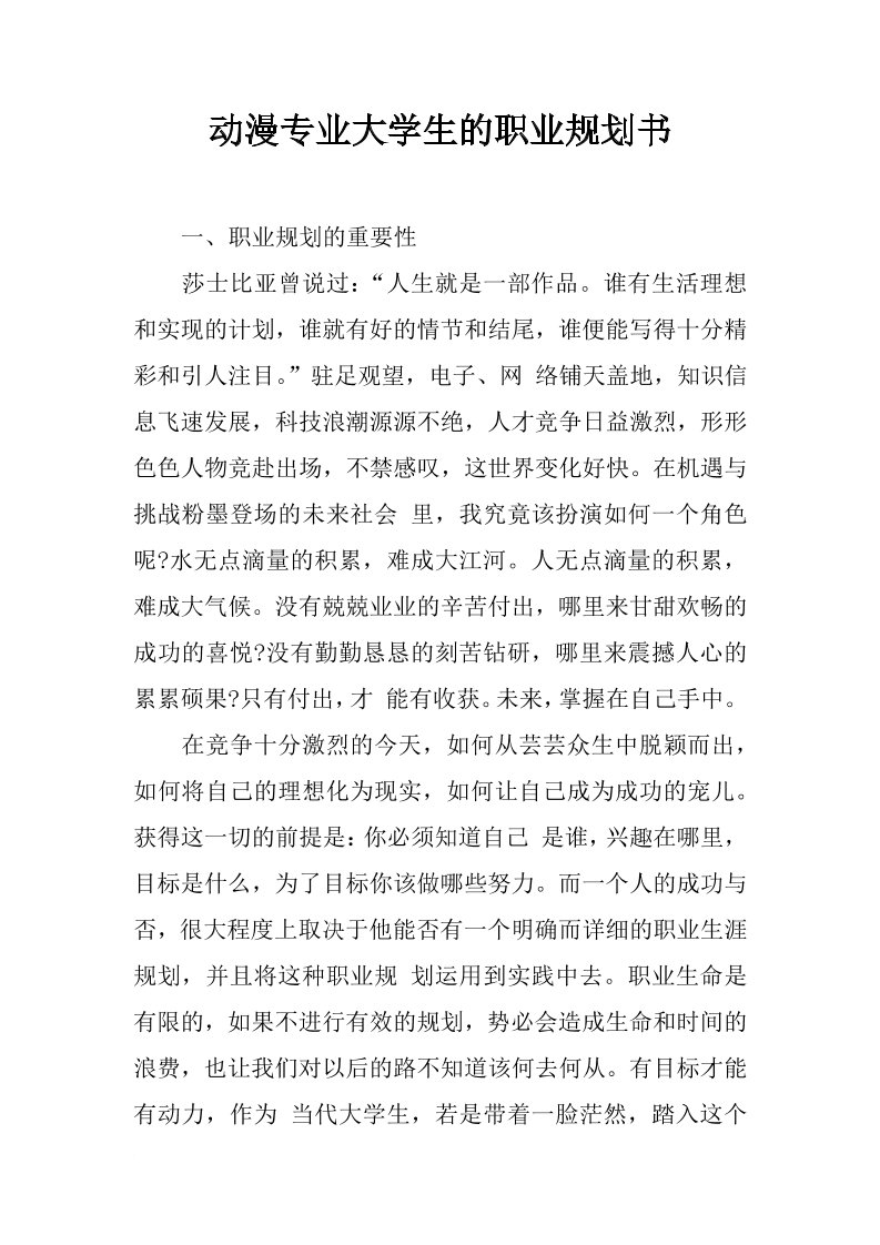 动漫专业大学生的职业规划书