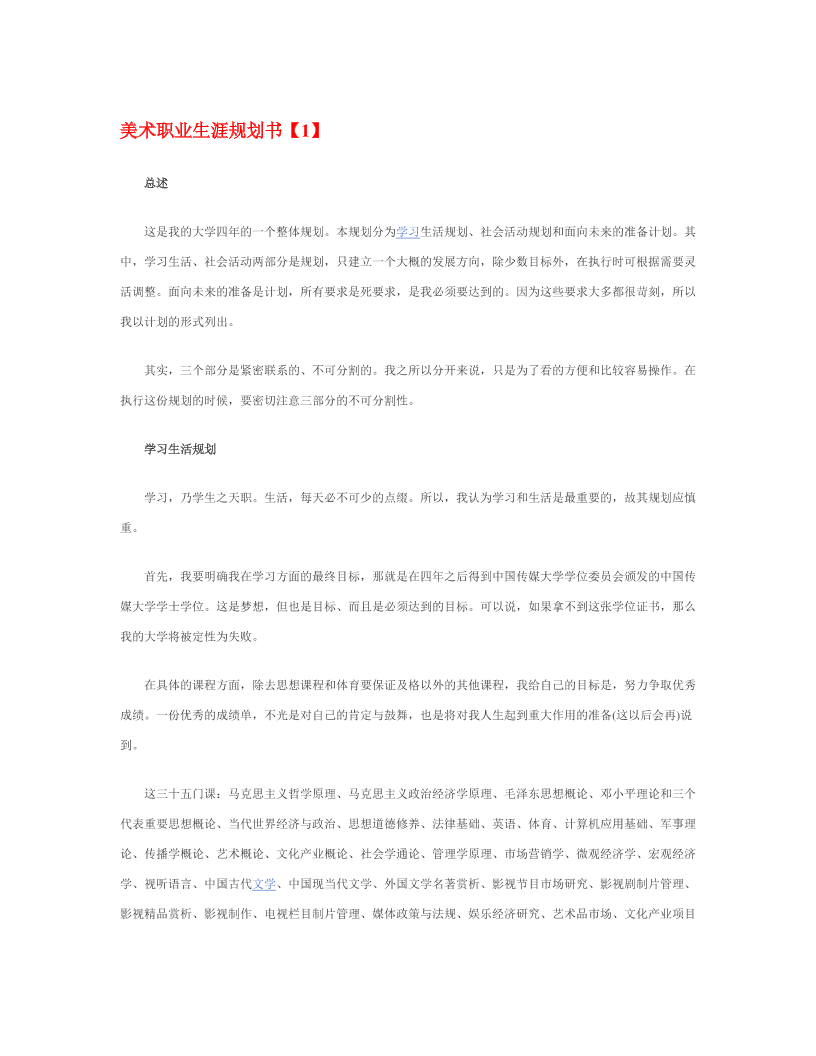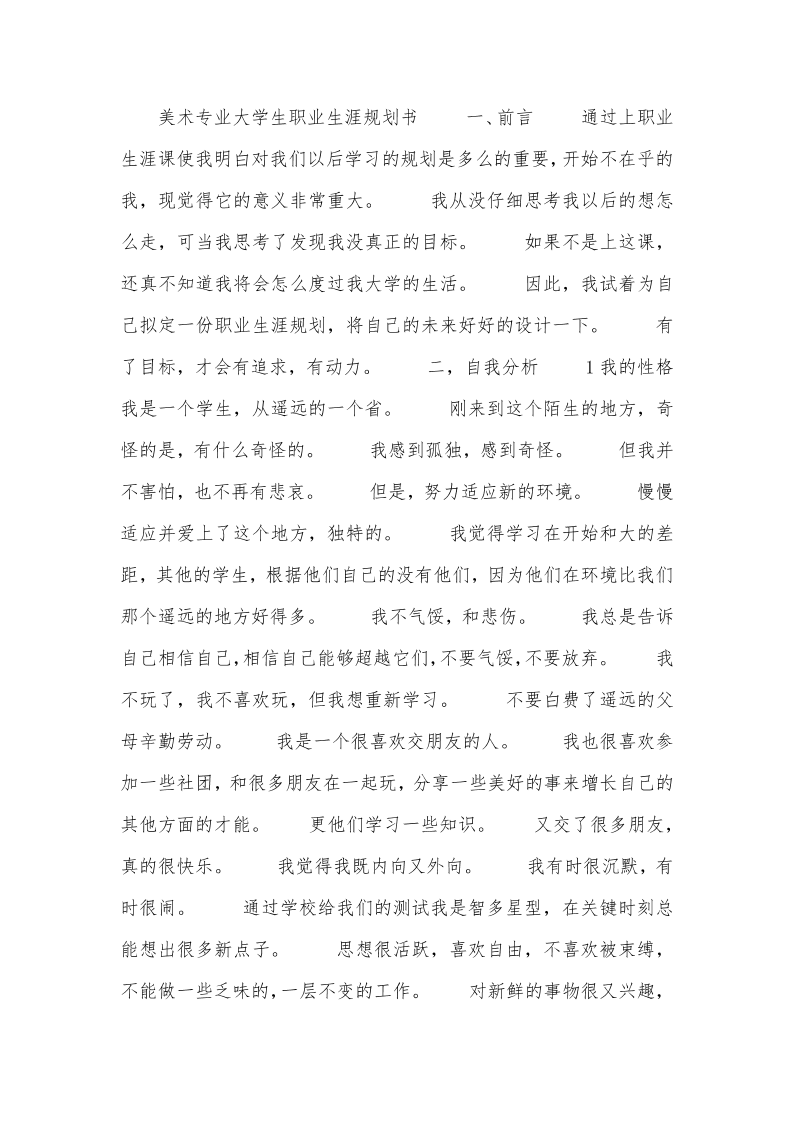 美 术 职 业 生 涯 规 划 书