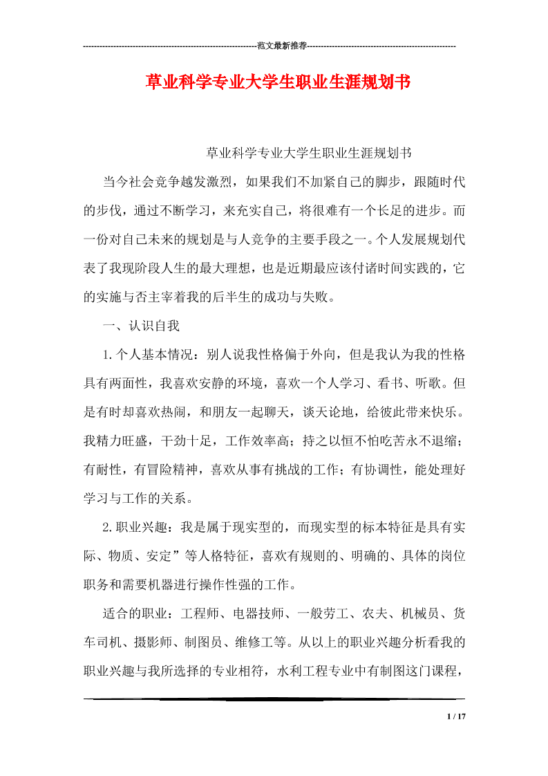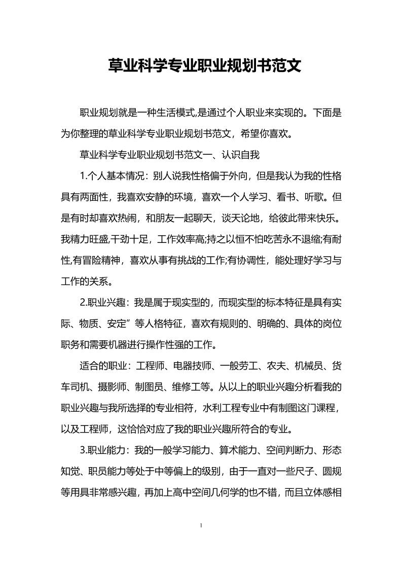 草业科学专业大学生职业生涯规划书 (1)