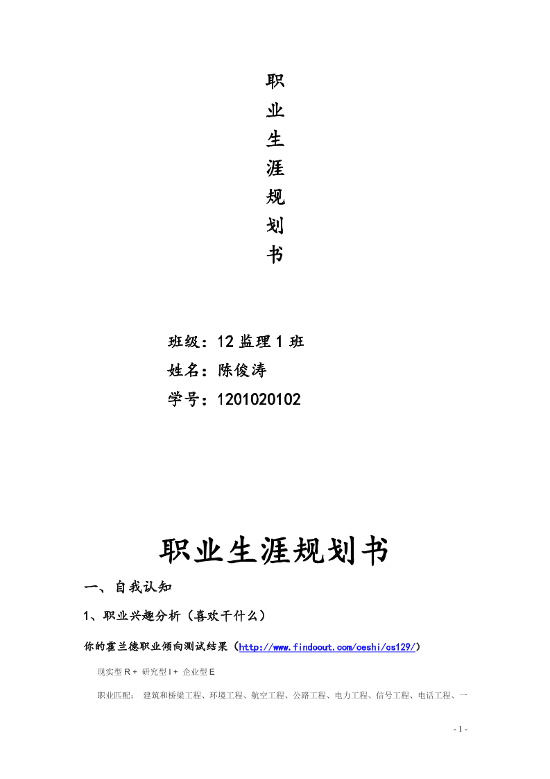 土木系(-监理-)专业职业生涯规划书(结课作业)