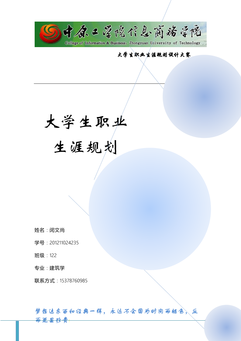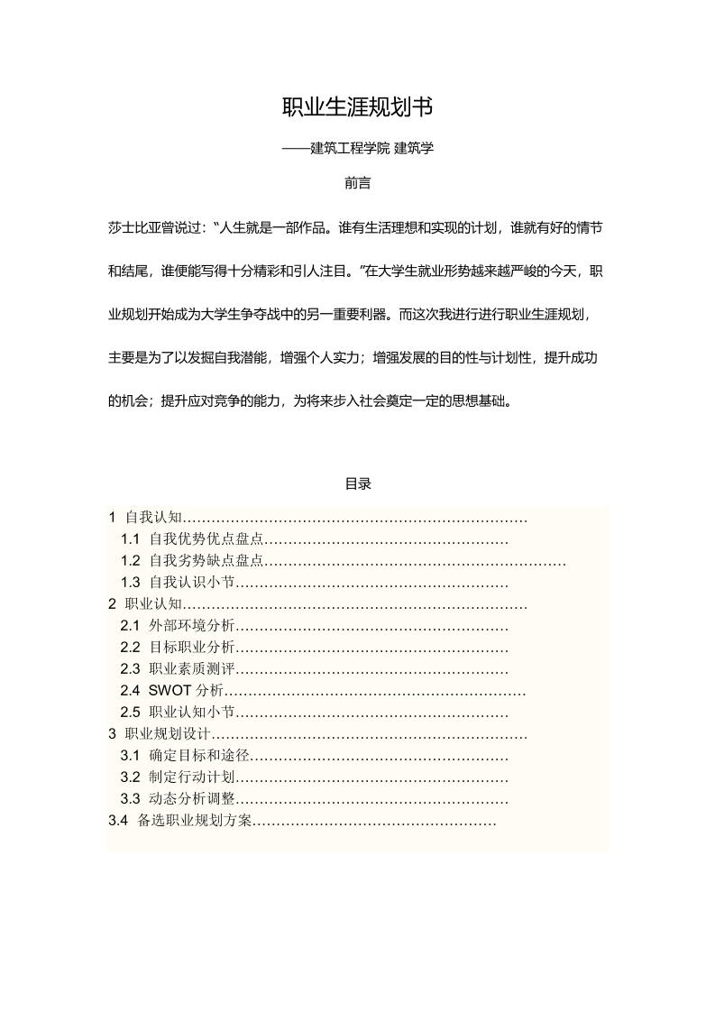 大学生建筑学职业生涯规划书(367)