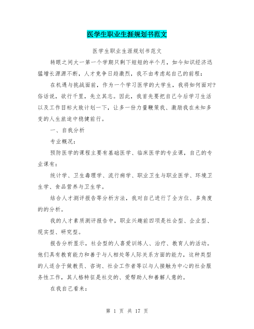 医学生职业生涯规划书范文