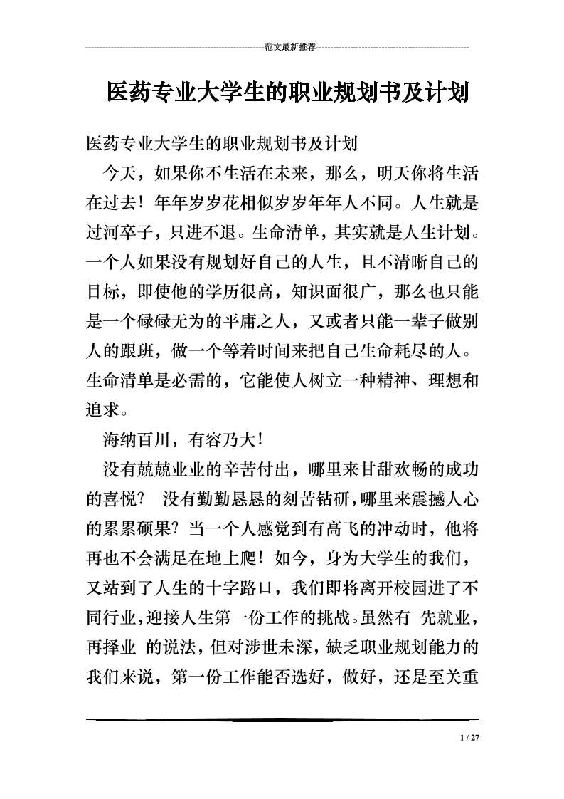 医药专业大学生的职业规划书及计划