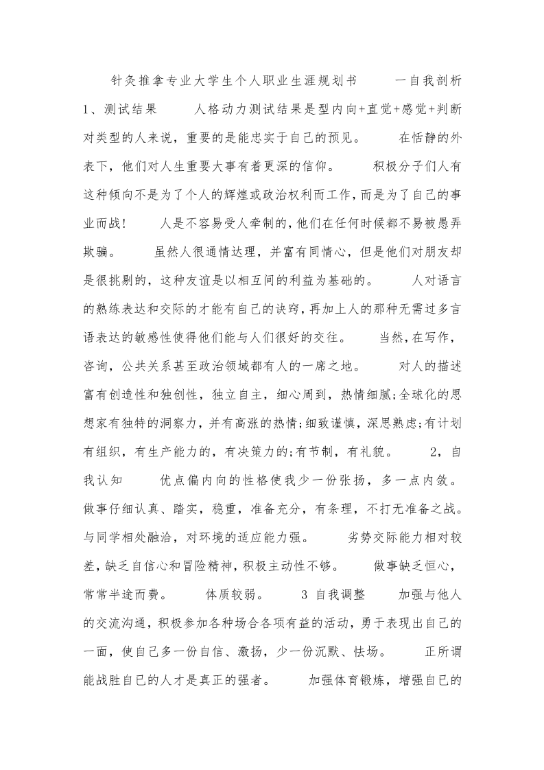 针灸推拿专业大学生个人职业生涯规划书