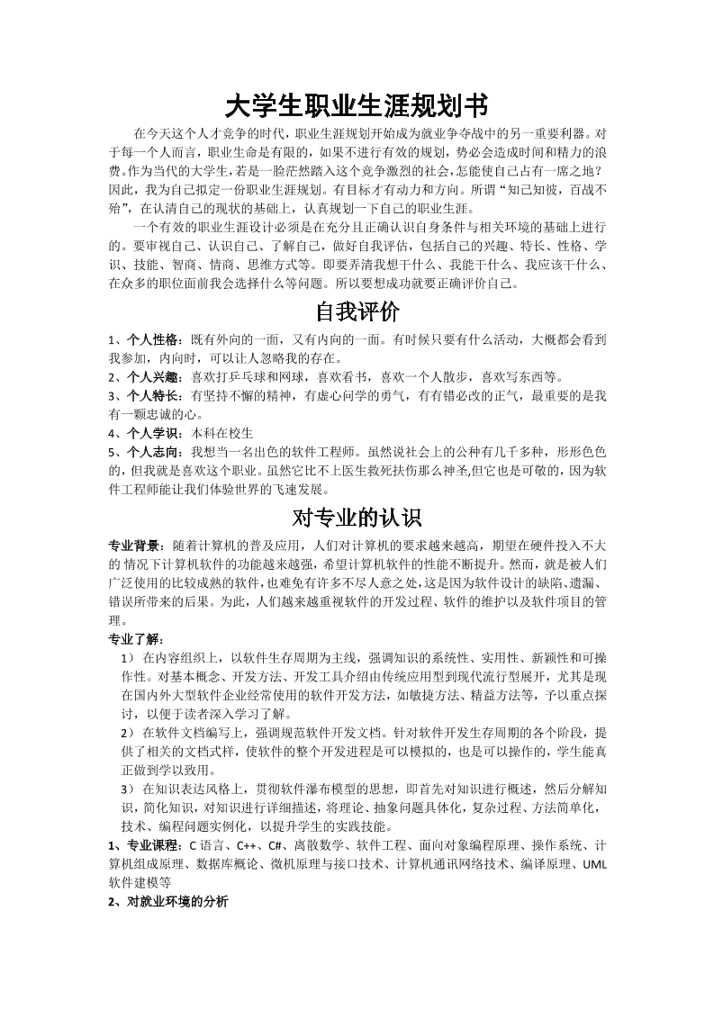 大学生职业生涯规划书软件工程