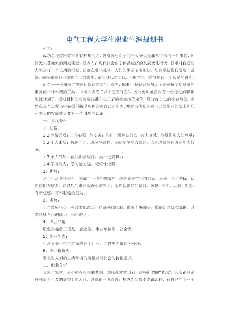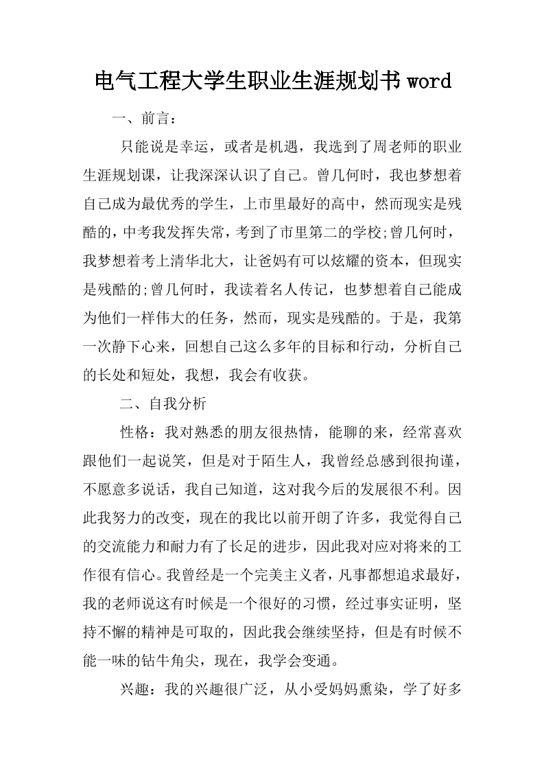 电气工程大学生职业生涯规划书word