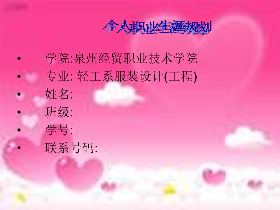 泉州经贸职业技术学院轻工系服装设计专业职业生涯规划书范例(PPT22页)