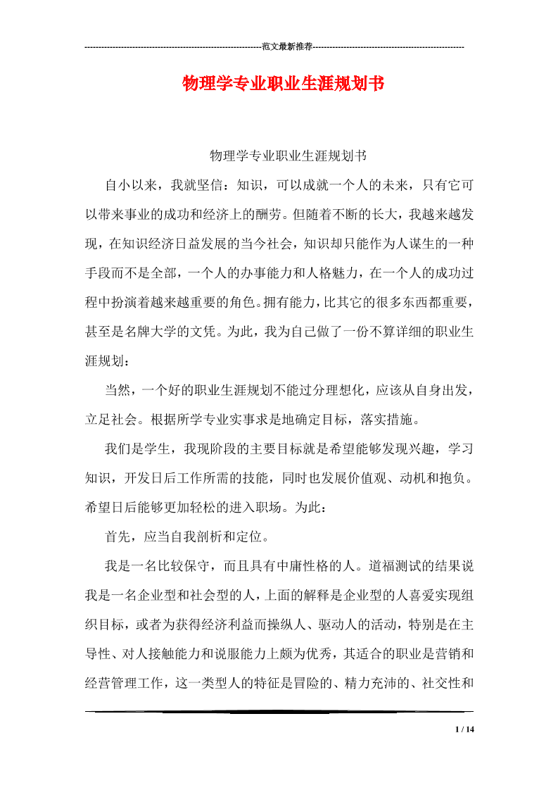 物理学职业规划书