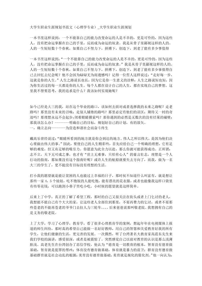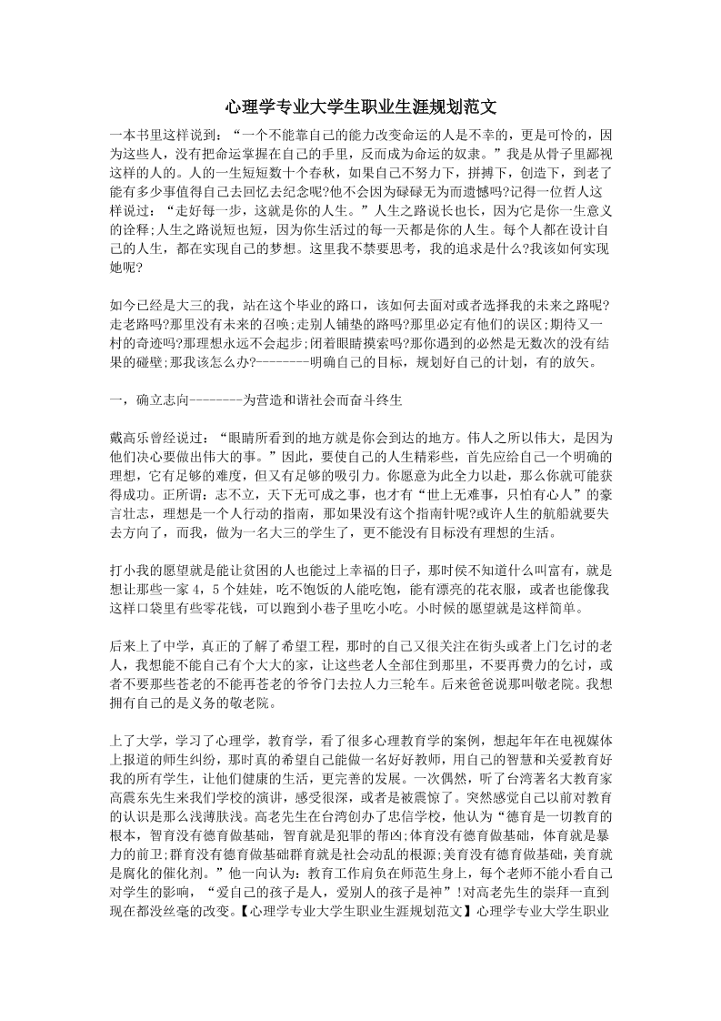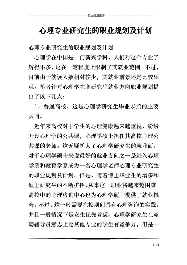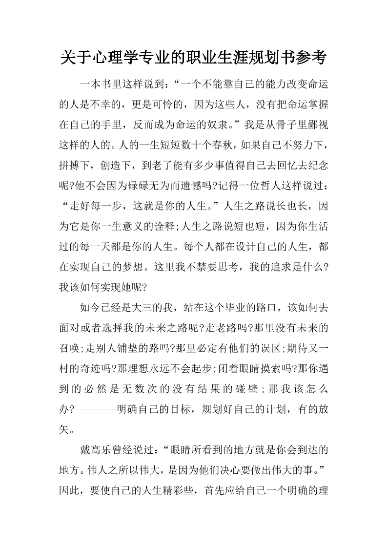 大学生职业生涯规划书范文(心理学专业)-大学生职业生涯规划文库