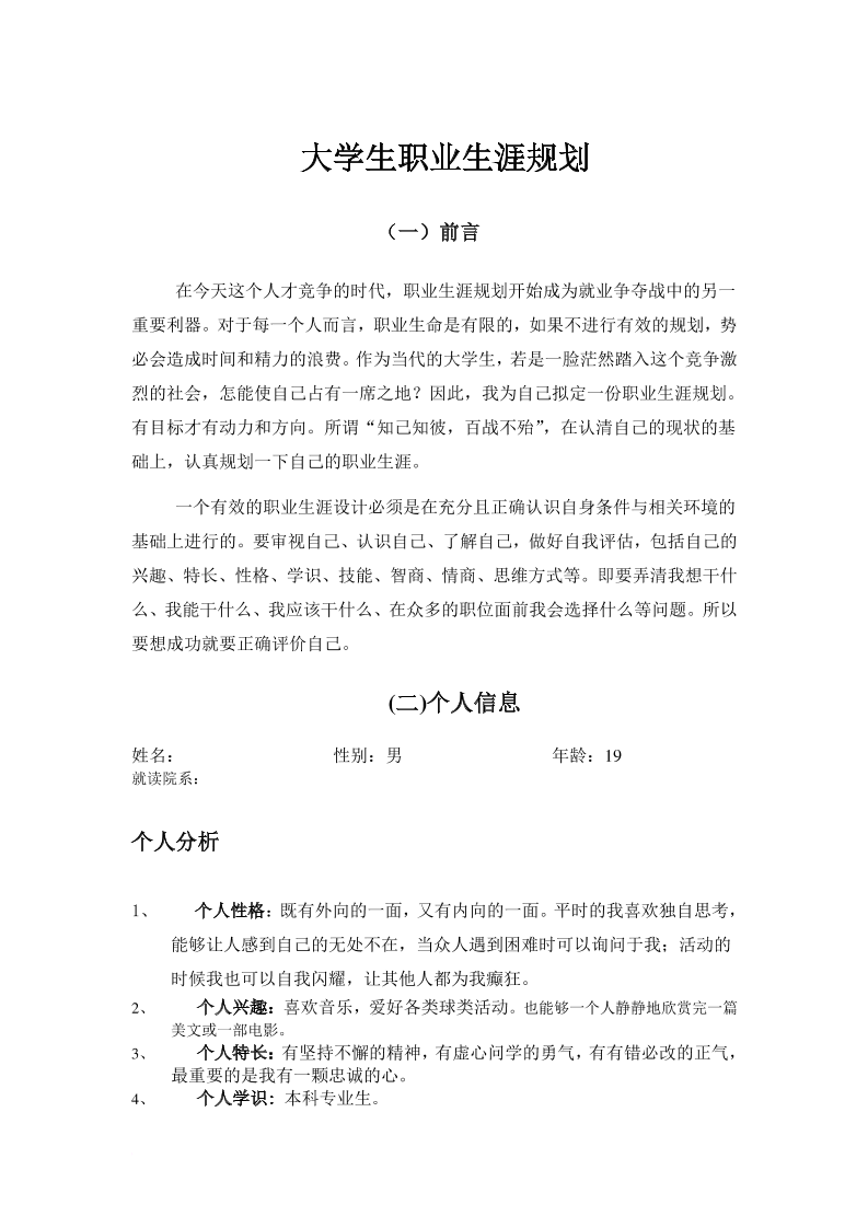 生涯规划书模板