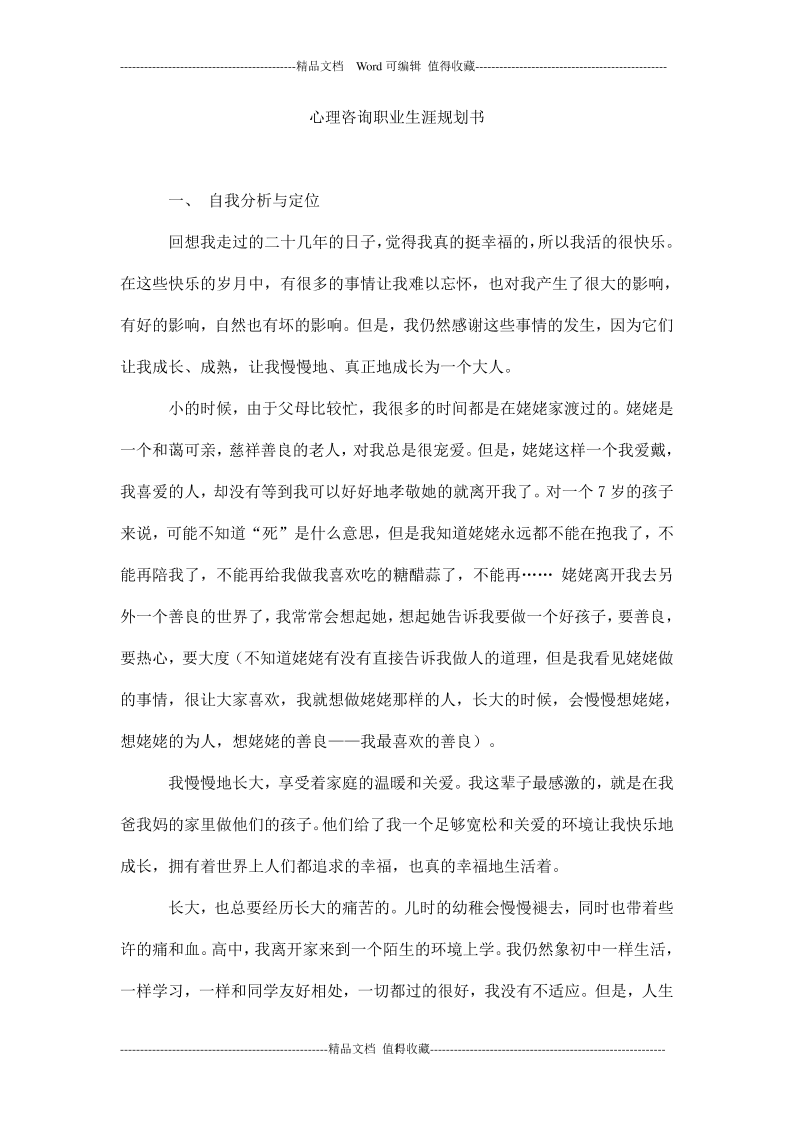 心理咨询职业生涯规划书 (1)