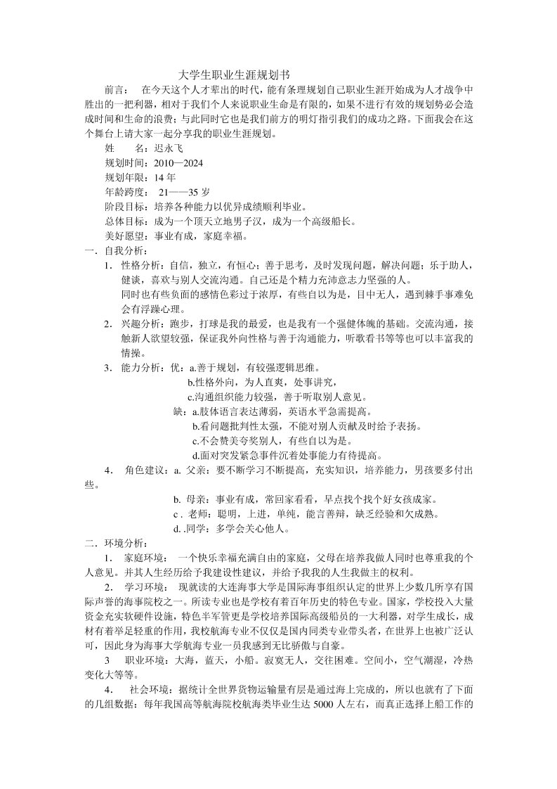 航海类职业生涯规书