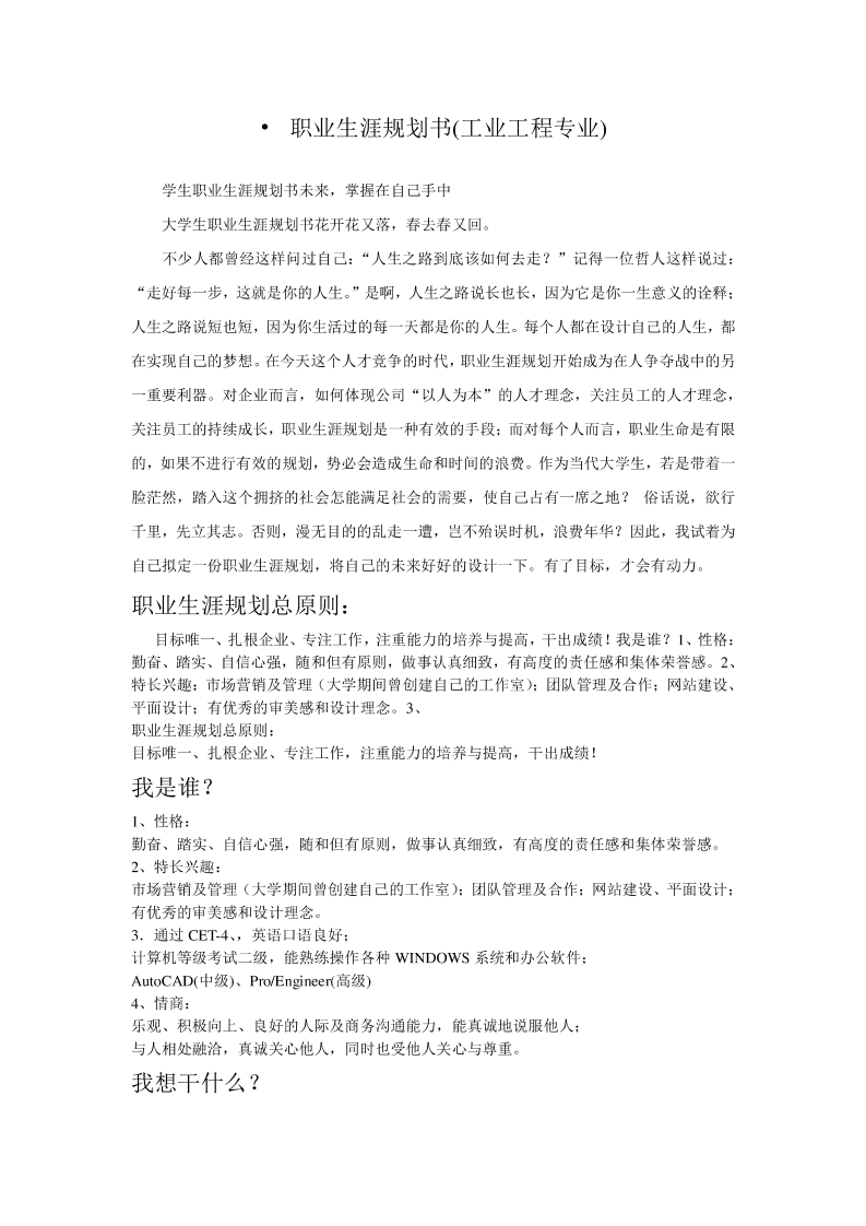 职业生涯规划书(工业工程专业)