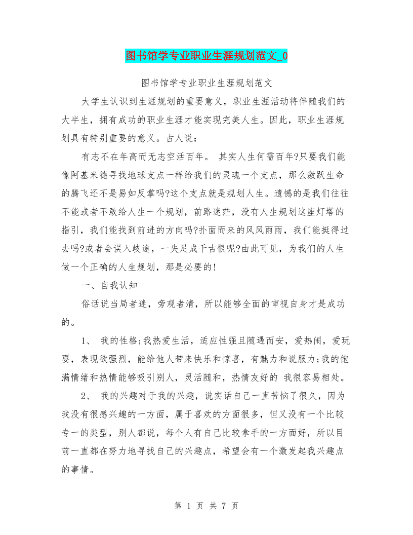 图书馆学专业职业生涯规划范文-0