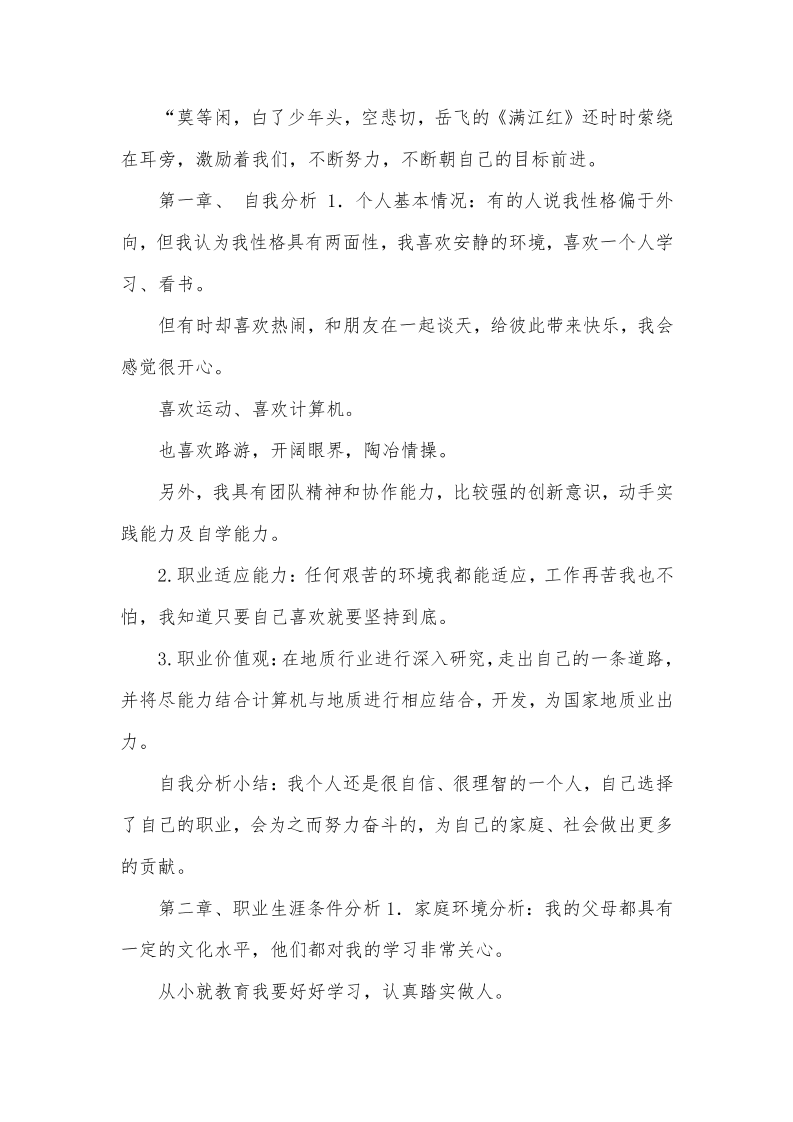 地质专业大学生职业生涯规划