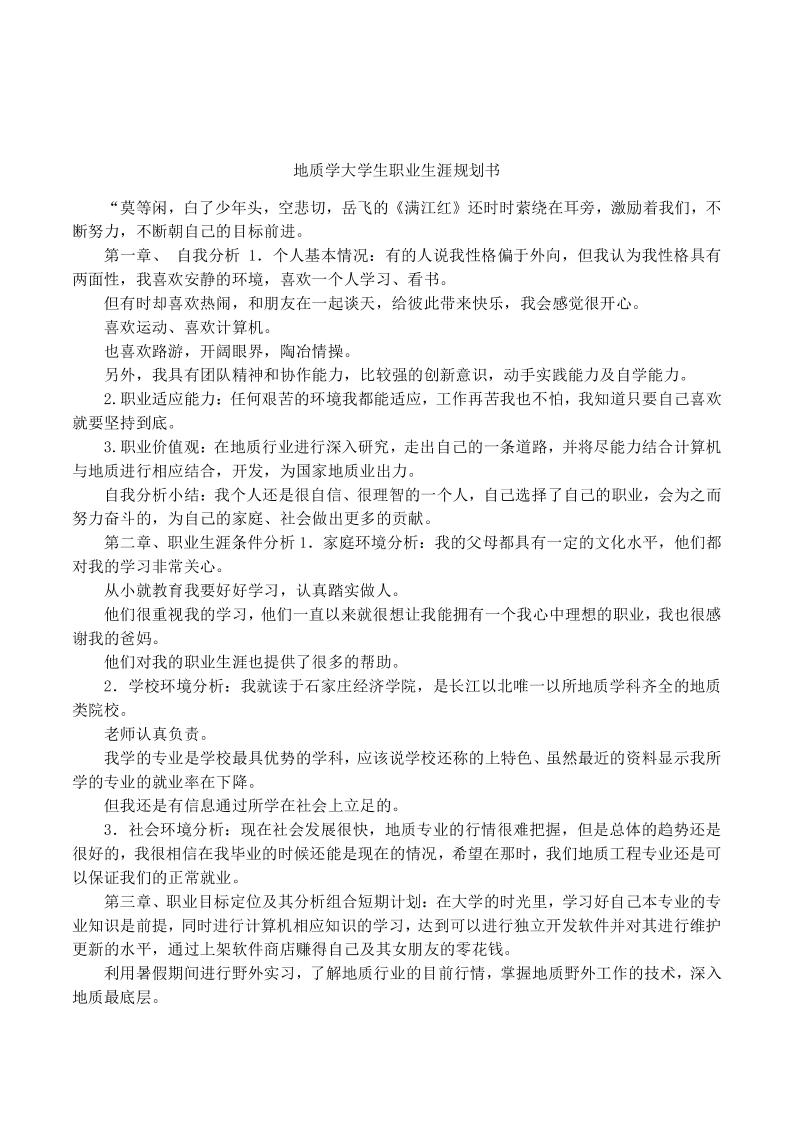 地质学大学生职业生涯规划书 (1)