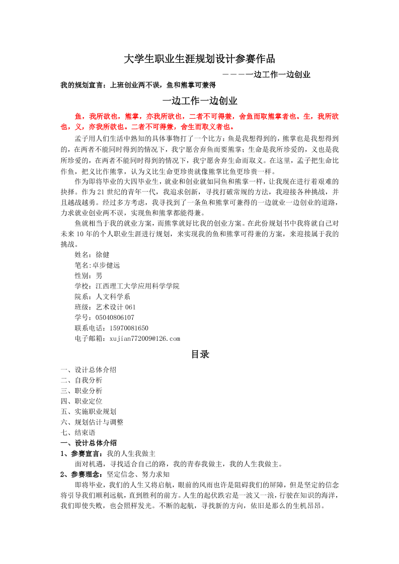 生涯规划书模板