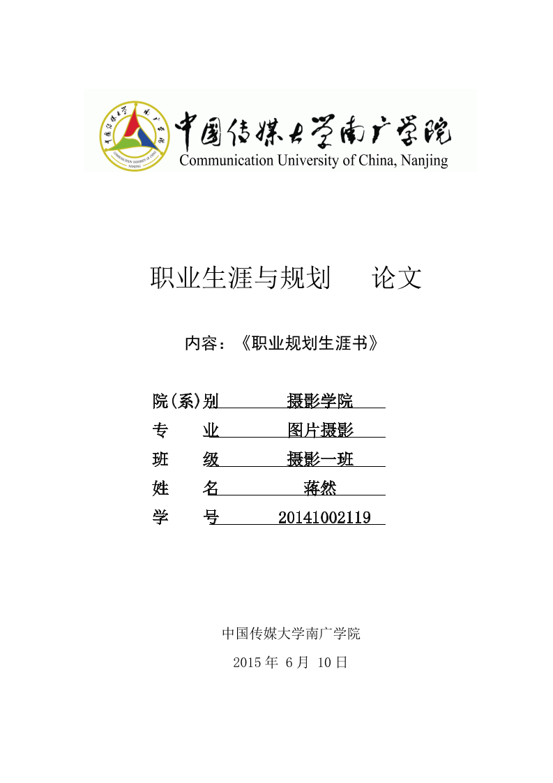 职业生涯规划--图片摄影专业