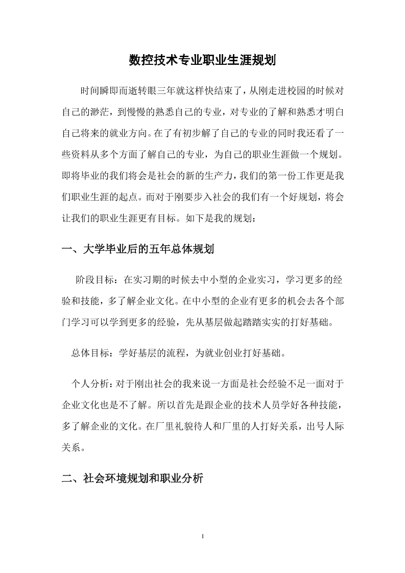 数控专业职业规划设计书