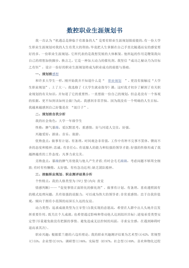 大学生职业生涯规划书--数控