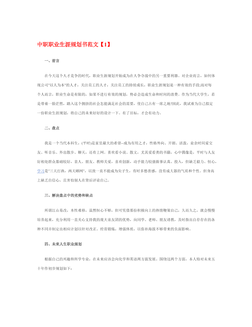 最新经典中职职业生涯规划书范文范文