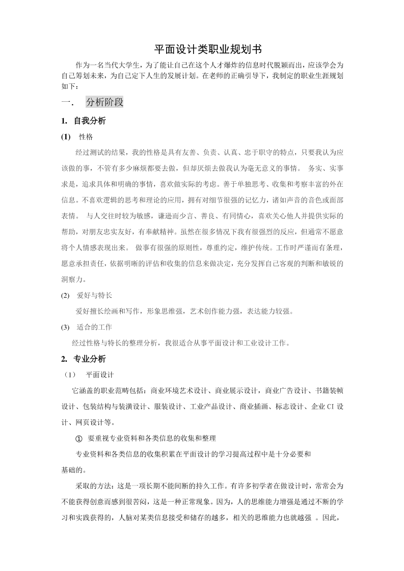 平面设计类职业规划书