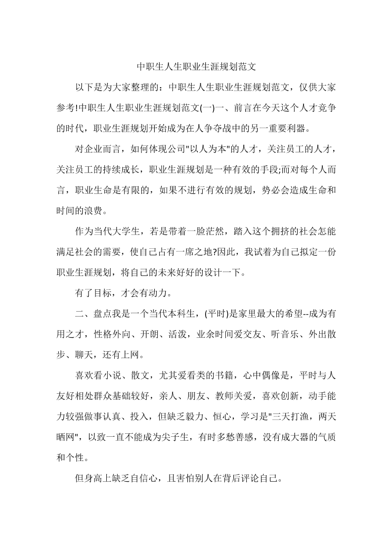 职业生涯规划范文
