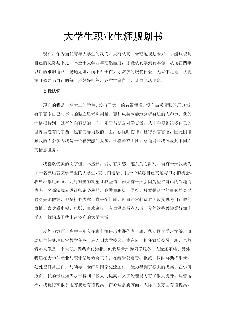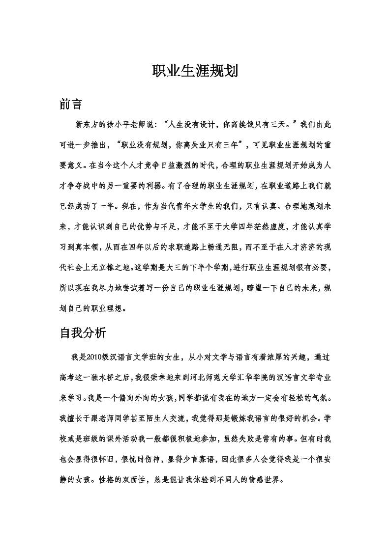 中文系女生的职业生涯规划书