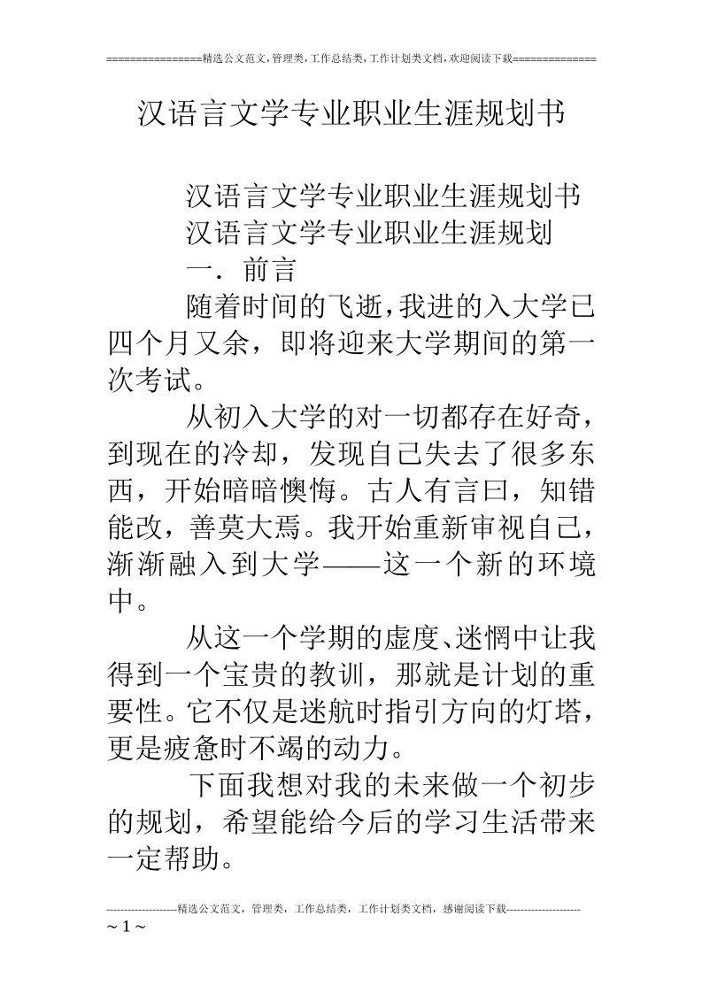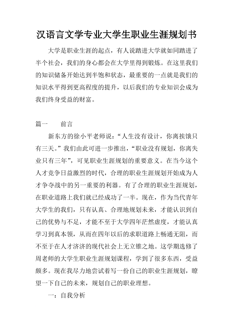 汉语言文学专业职业生涯规划书 (1)