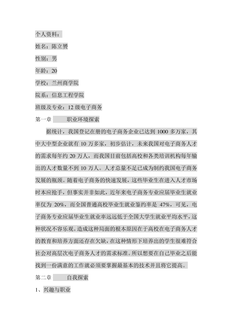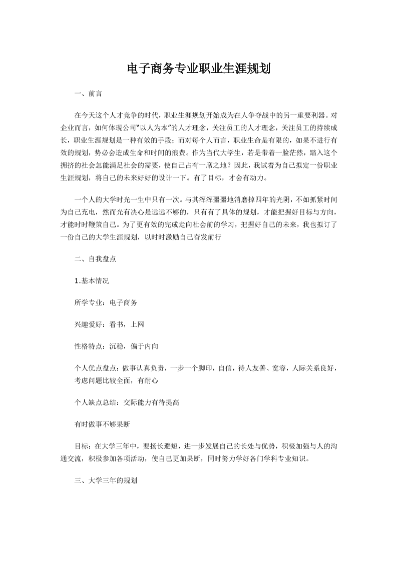 电子商务的职业生涯规划书