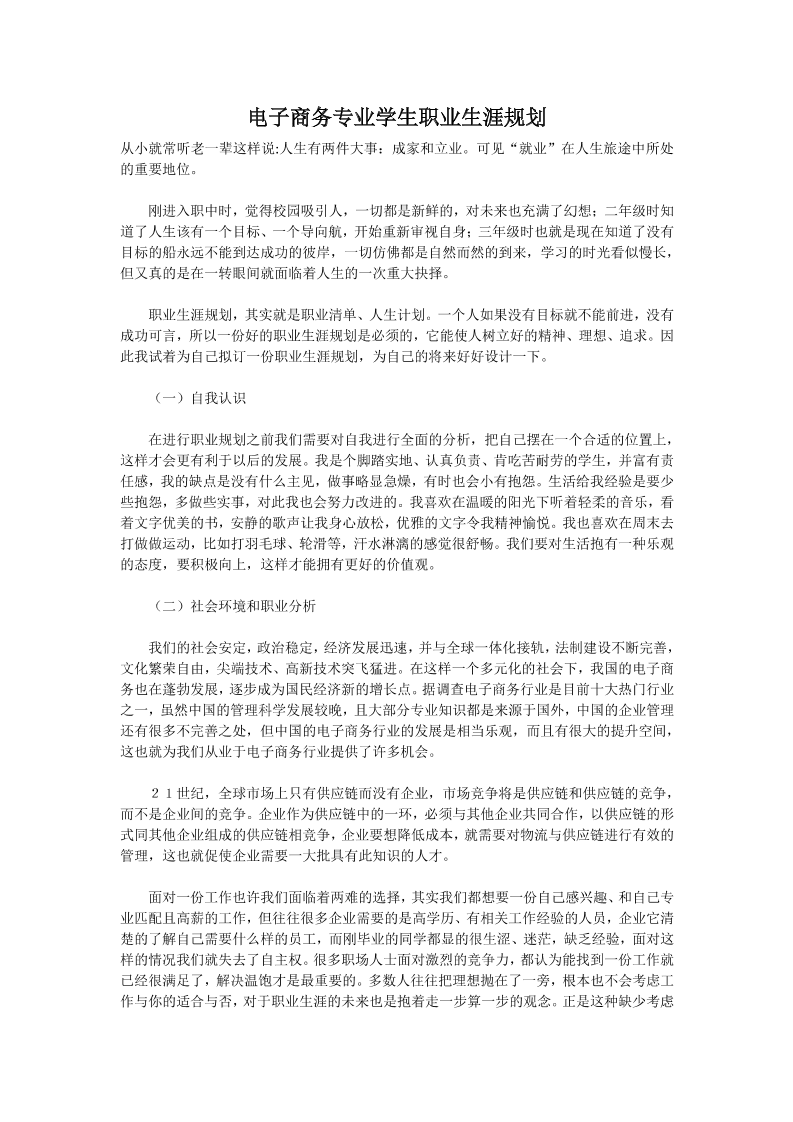 电子商务专业职业生涯规划书-doc