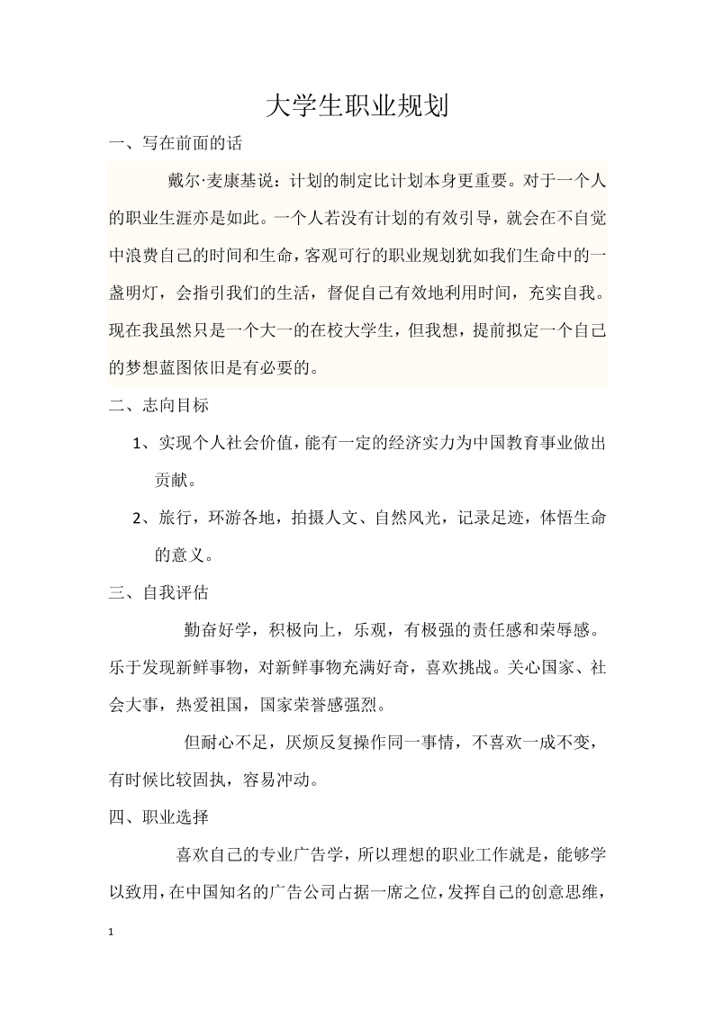广告人生规划书