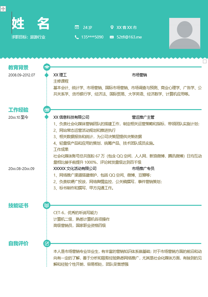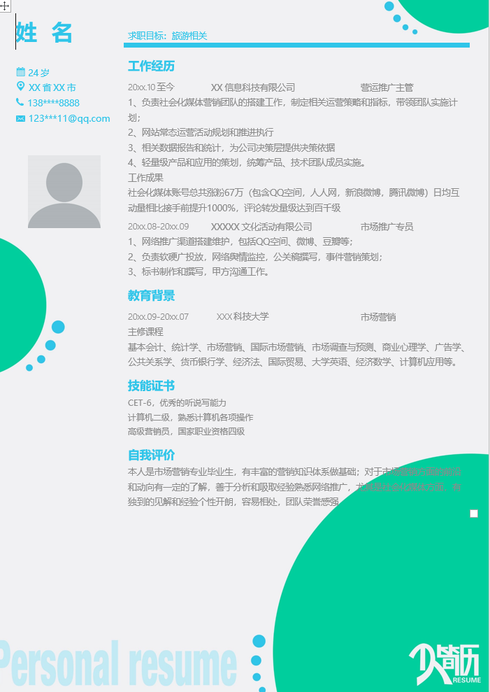 旅游行业简历模板-4